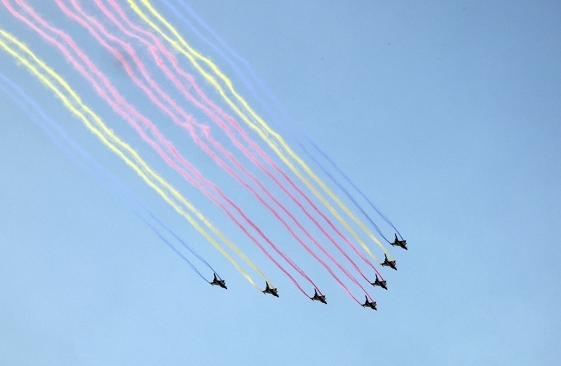 9月3日,紀(jì)念中國人民抗日戰(zhàn)爭暨世界反法西斯戰(zhàn)爭勝利80周年大會在北京隆重舉行。這是教練機(jī)梯隊(duì)接受檢閱。