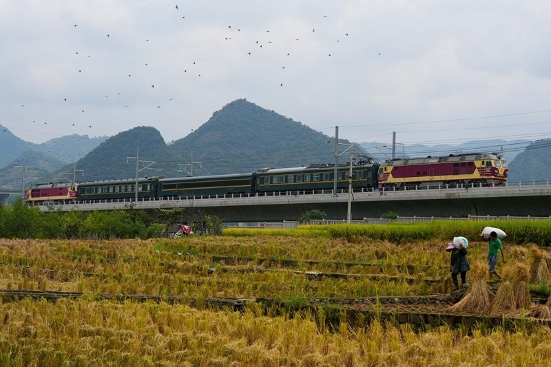9月6日,在貴州省盤州市,盤興高鐵聯(lián)調聯(lián)試檢測列車從盤州站駛出。