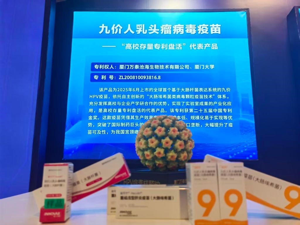 在第十四屆中國國際專利技術與產品交易會上展出的九價人乳頭瘤病毒疫苗。新華社記者徐鵬航 攝