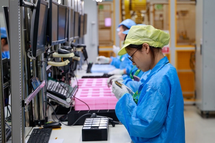 2025年9月15日,工作人員在江蘇無(wú)錫高新區(qū)綜合保稅區(qū)捷普電子(無(wú)錫)有限公司的生產(chǎn)車(chē)間里進(jìn)行產(chǎn)品檢驗(yàn)。新華社記者 劉佳琪 攝