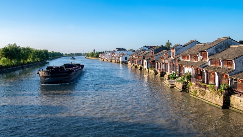 世界文化遺產(chǎn)大運河流經(jīng)荻港村,造就了村中小橋流水的江南景致。這里的?;~塘系統(tǒng),被聯(lián)合國教科文組織譽為“良性循環(huán)典范”,構(gòu)建了桑魚共生的特色景觀。