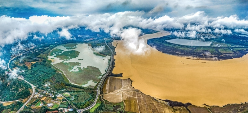 10月17日在山西省運城市平陸縣境內拍攝的黃河云海景觀。