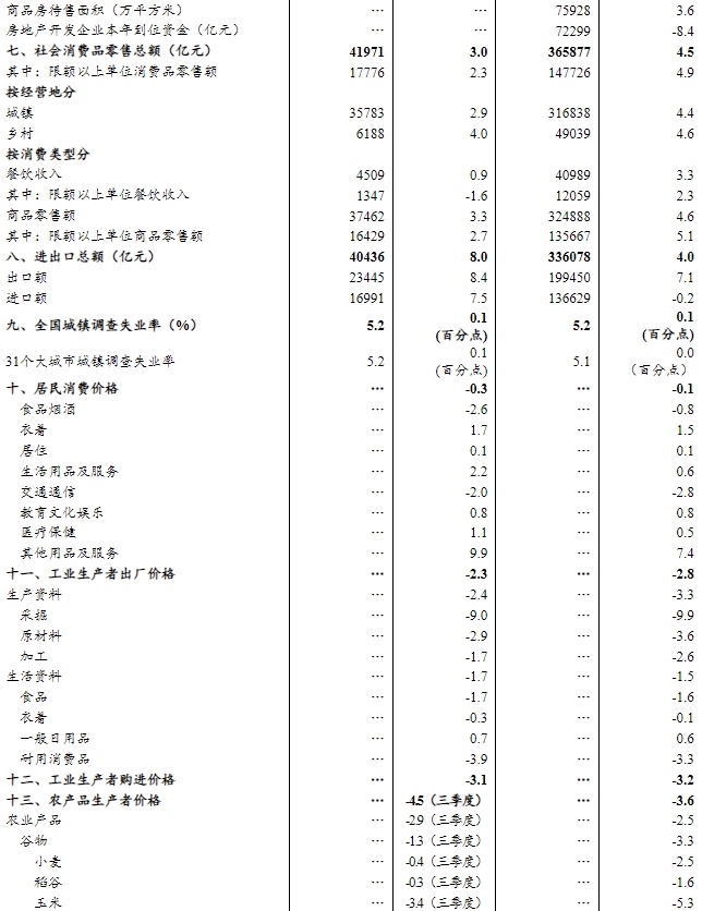 前三季度,在以習(xí)近平同志為核心的黨中央堅強領(lǐng)導(dǎo)下,各地區(qū)各部門認(rèn)真貫徹落實黨中央、國務(wù)院決策部署,堅持穩(wěn)中求進(jìn)工作總基調(diào),完整準(zhǔn)確全面貫徹新發(fā)展理念,加快構(gòu)建新發(fā)展格局,認(rèn)真實施更加積極有為的宏觀政策,積極做強國內(nèi)大循環(huán),促進(jìn)國內(nèi)國際雙循環(huán),扎實推動高質(zhì)量發(fā)展,國民經(jīng)濟(jì)頂住壓力延續(xù)穩(wěn)中有進(jìn)發(fā)展態(tài)勢,生產(chǎn)供給平穩(wěn)增長,就業(yè)物價總體穩(wěn)定,新動能穩(wěn)步成長,民生保障有力有效,經(jīng)濟(jì)運行展現(xiàn)出強大韌性和活力。