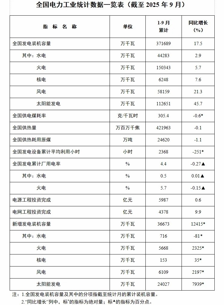 據(jù)“國家能源局”微信公眾號消息,10月26日,國家能源局發(fā)布1-9月份全國電力工業(yè)統(tǒng)計數(shù)據(jù)。