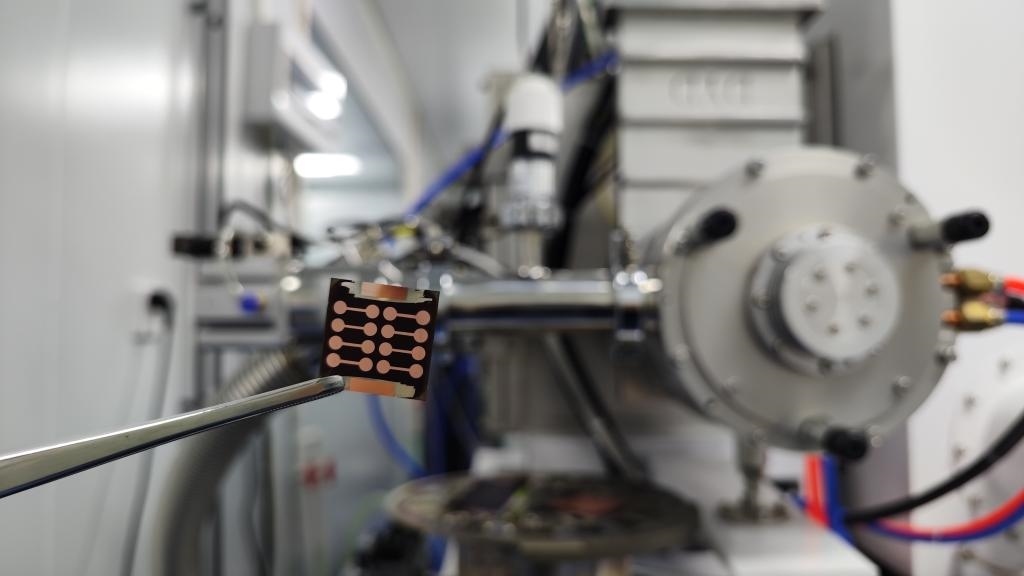 這是南京大學等單位研制的光電轉(zhuǎn)化效率30.1%全鈣鈦礦疊層光伏電池。(受訪者供圖)