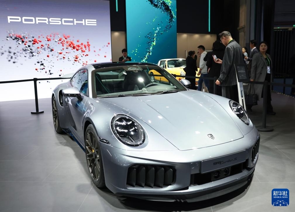 11月6日在進博會汽車及智慧出行展區(qū)大眾汽車展臺拍攝的新款保時捷911Turbo S。這是該產(chǎn)品在亞洲首發(fā)。