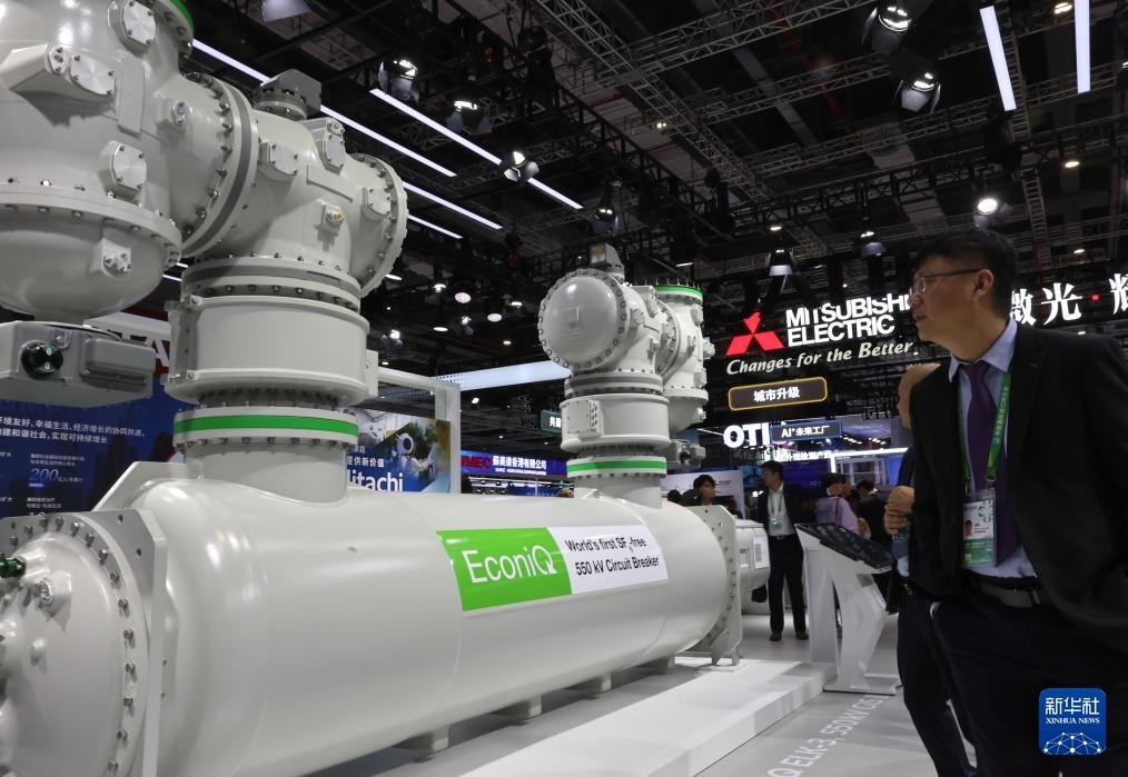 11月6日,參觀者在日立公司一款封閉式氣體絕緣開關設備展品旁駐足觀看,這是該型號產(chǎn)品的中國首展。