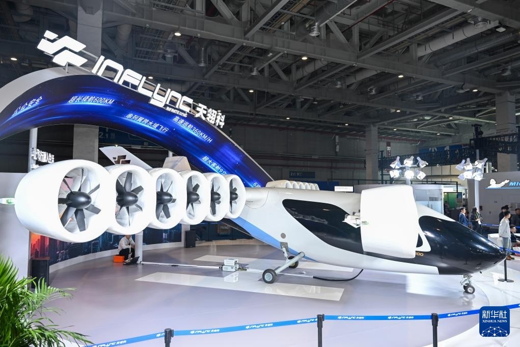 11月6日在進博會汽車及智慧出行展區(qū)天翎科展臺拍攝的L600全尺寸傾轉涵道翼eVTOL。這是該產(chǎn)品全球首發(fā)。