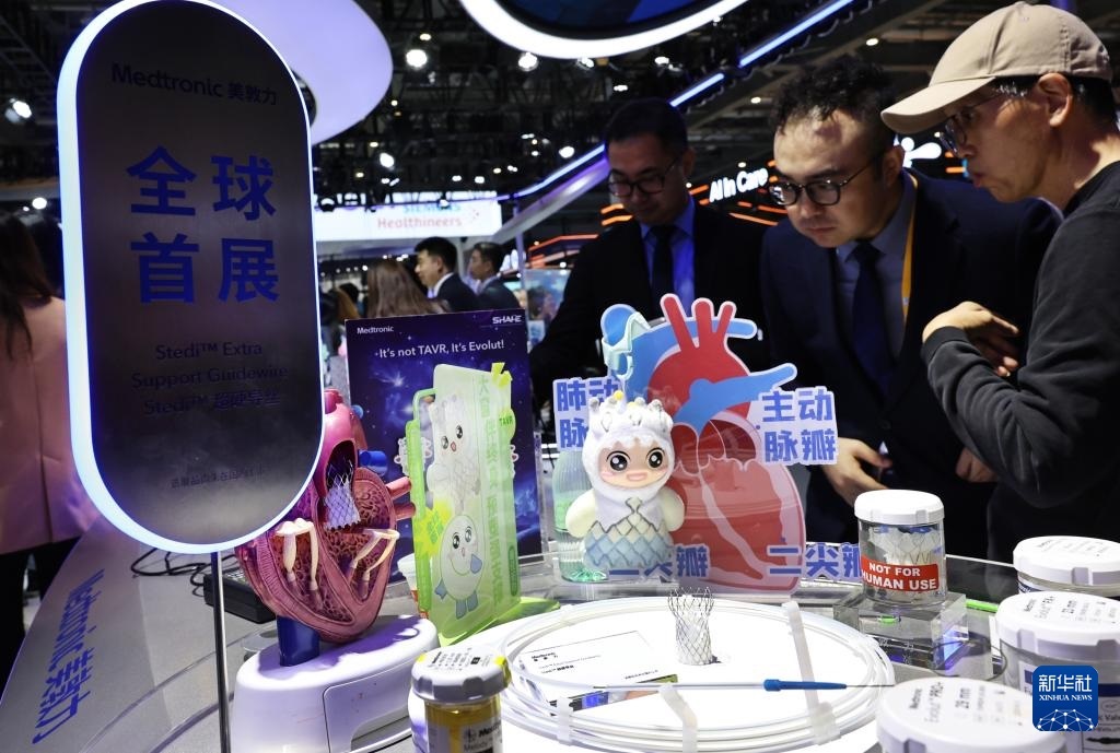 11月6日,參觀者在美敦力公司一款超硬導絲產(chǎn)品展臺前駐足觀看,這是該產(chǎn)品的全球首展。