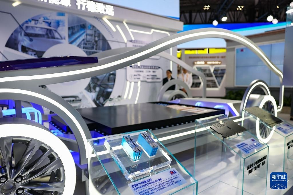 11月6日在進博會技術裝備展區(qū)立邦展臺拍攝的“新能源動力電池包涂裝解決方案”展示。這是該方案在中國首發(fā)。