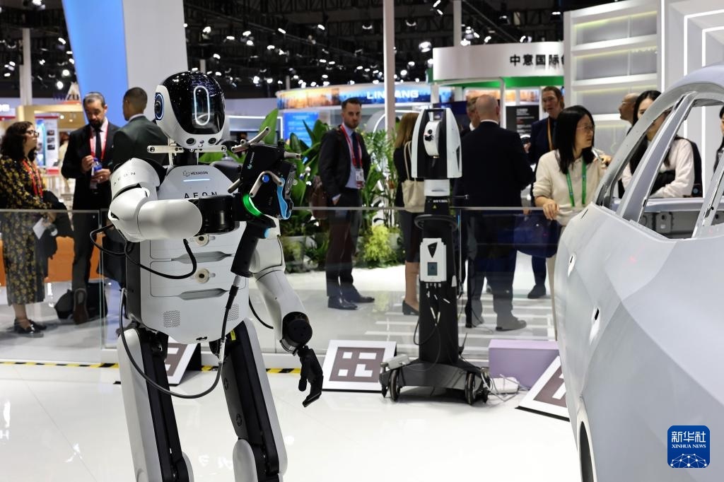 11月5日,一個??怂箍礎EON工業(yè)人形機器人在展臺上進行三維掃描作業(yè)演示,這也是該型號機器人工業(yè)自動化應用場景的中國首展。
