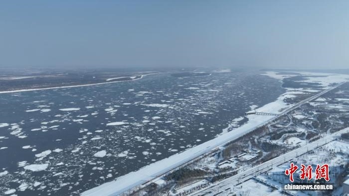 中俄界江黑龍江撫遠段進入冬季流冰期