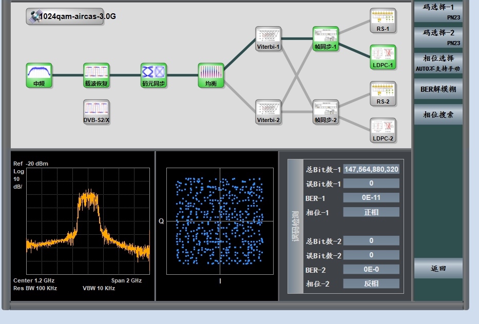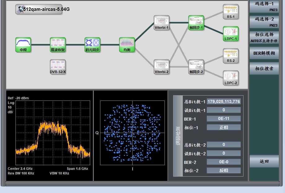 △X頻段雙通道實驗星座圖及誤碼率情況