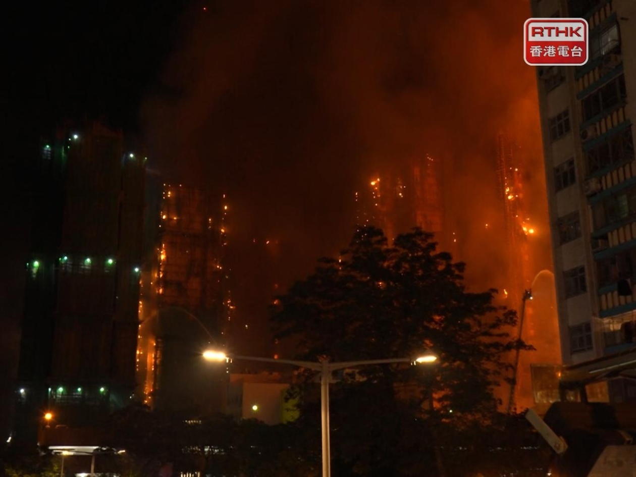 香港大埔宏福苑26日下午發(fā)生火災。圖源:香港電臺網(wǎng)站
