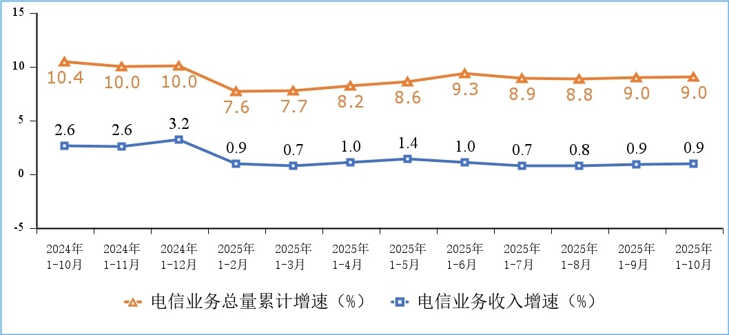 據(jù)工業(yè)和信息化部網站消息,工信部發(fā)布2025年前10個月通信業(yè)經濟運行情況。