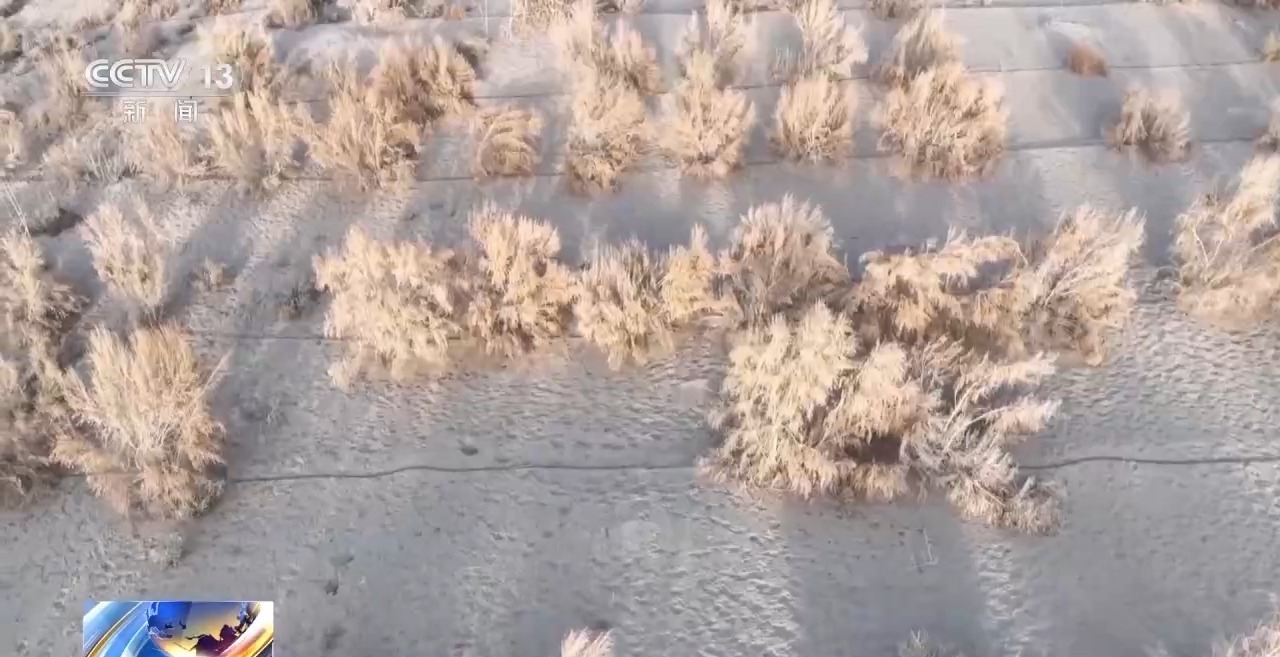 中國科學(xué)院新疆生態(tài)與地理研究所策勒沙漠研究站站長 曾凡江:昆侖山下來有一股水,自然形成的一條河,我們就巧妙地把這個河利用起來了,雖然水量不是那么大,但是它常年那種沖刷,寬度還是有的,這條河正好是跟沙漠前沿的過來的沙子一部分就沉積在沙河里面。