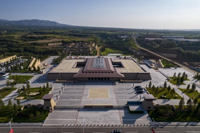 從空中俯瞰陶寺遺址博物館,外觀設(shè)計(jì)呈現(xiàn)一個(gè)“中”字。(資料圖)新華網(wǎng)發(fā)(王梓軒攝)