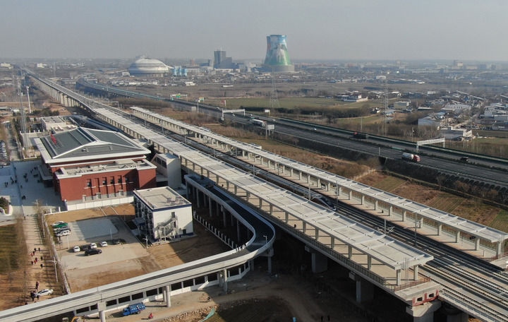 2025年12月26日,從延安開往西安的C9339次列車駛過(guò)富平南站(無(wú)人機(jī)照片)。新華社記者 李一博 攝