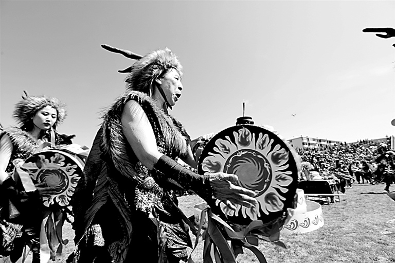 黑龍江省饒河縣在烏日貢節(jié)上舉辦伊瑪堪表演。光明圖片/IC Photo