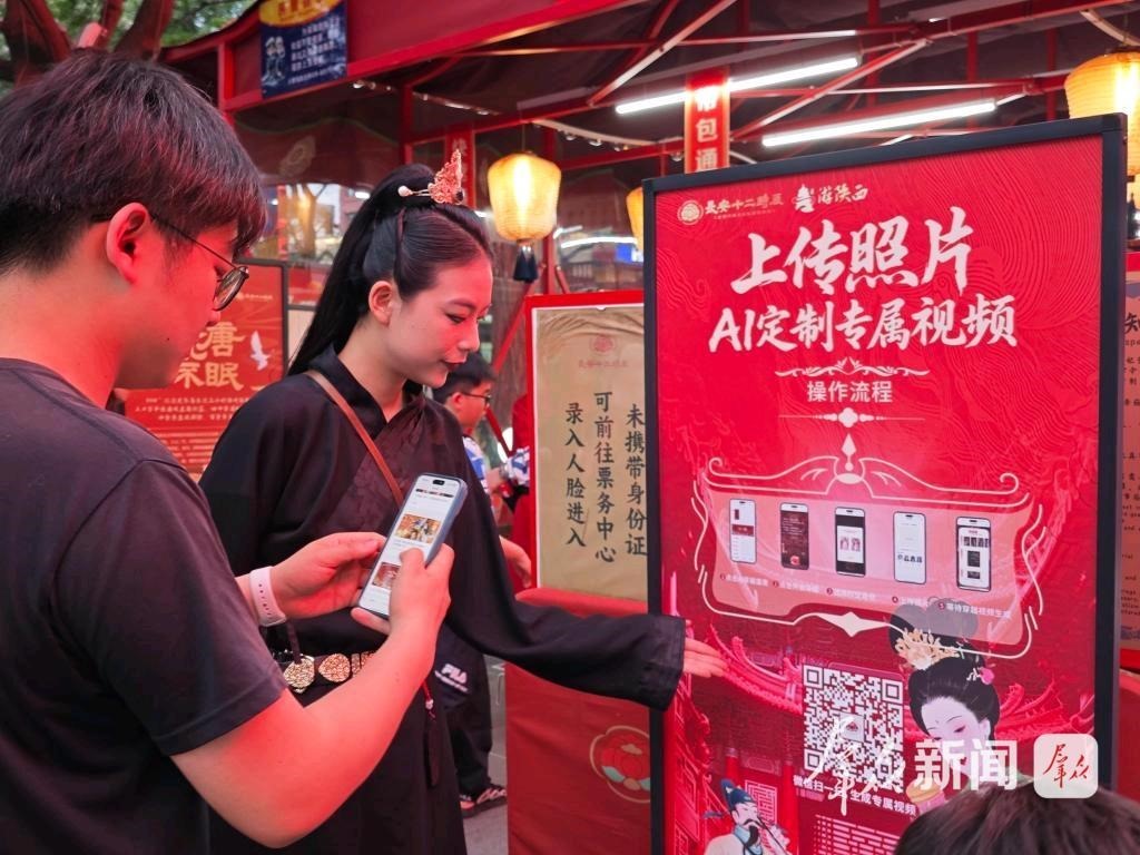 游客在長安十二時(shí)辰主題街區(qū)體驗(yàn)AI產(chǎn)品。(資料圖)