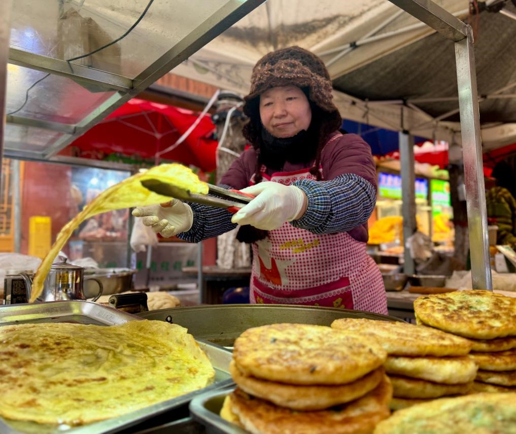 下南關(guān)街商戶馬有萍在制作面點(diǎn)。新華社記者張子琪 攝