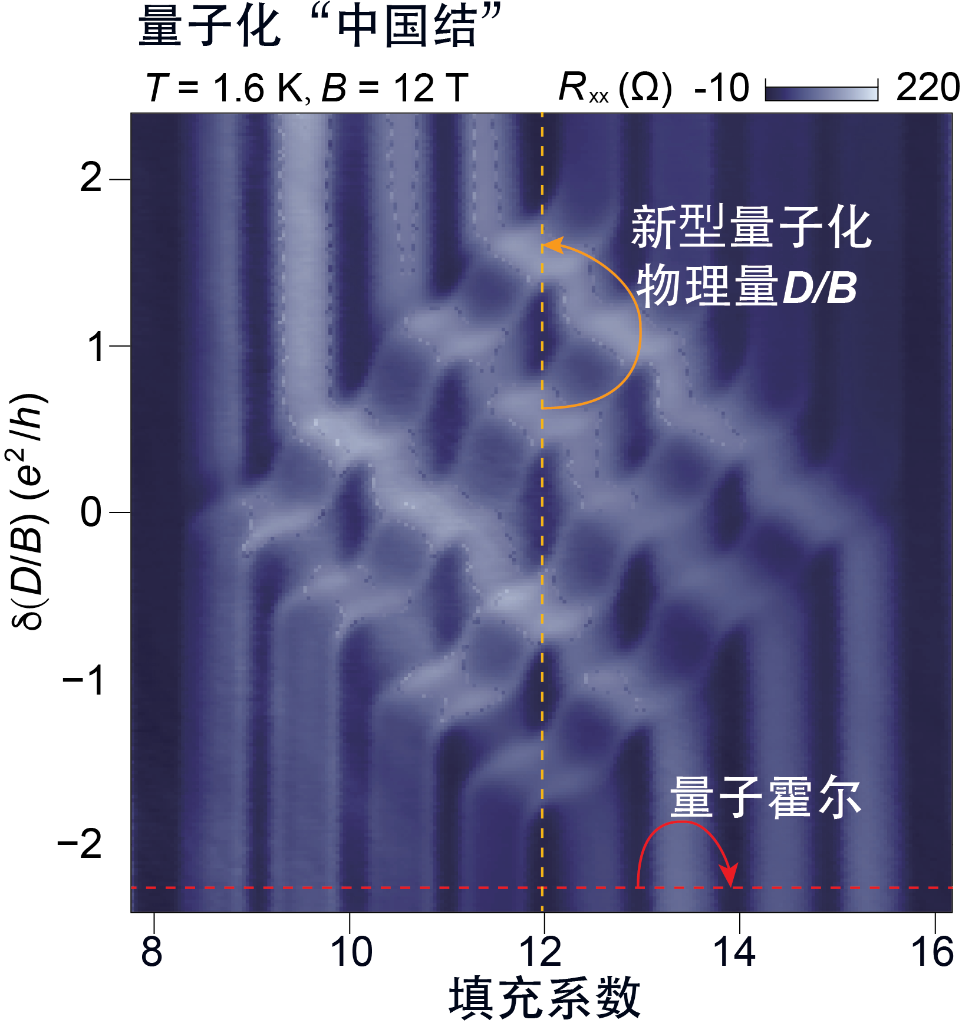 團隊中的武漢大學科研人員進一步揭示了背后的物理機制:“中國結(jié)”的形成源于電子相之間的競爭與切換。實驗表明,這種量子化特征具有極高的穩(wěn)定性,在3特斯拉至30特斯拉的寬磁場范圍內(nèi)均能保持清晰的結(jié)構(gòu)。