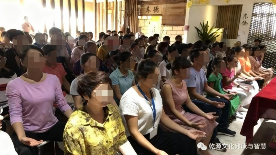 ▲某“乾源文化”培訓(xùn)點,大批學(xué)員跟隨打坐練習(xí)