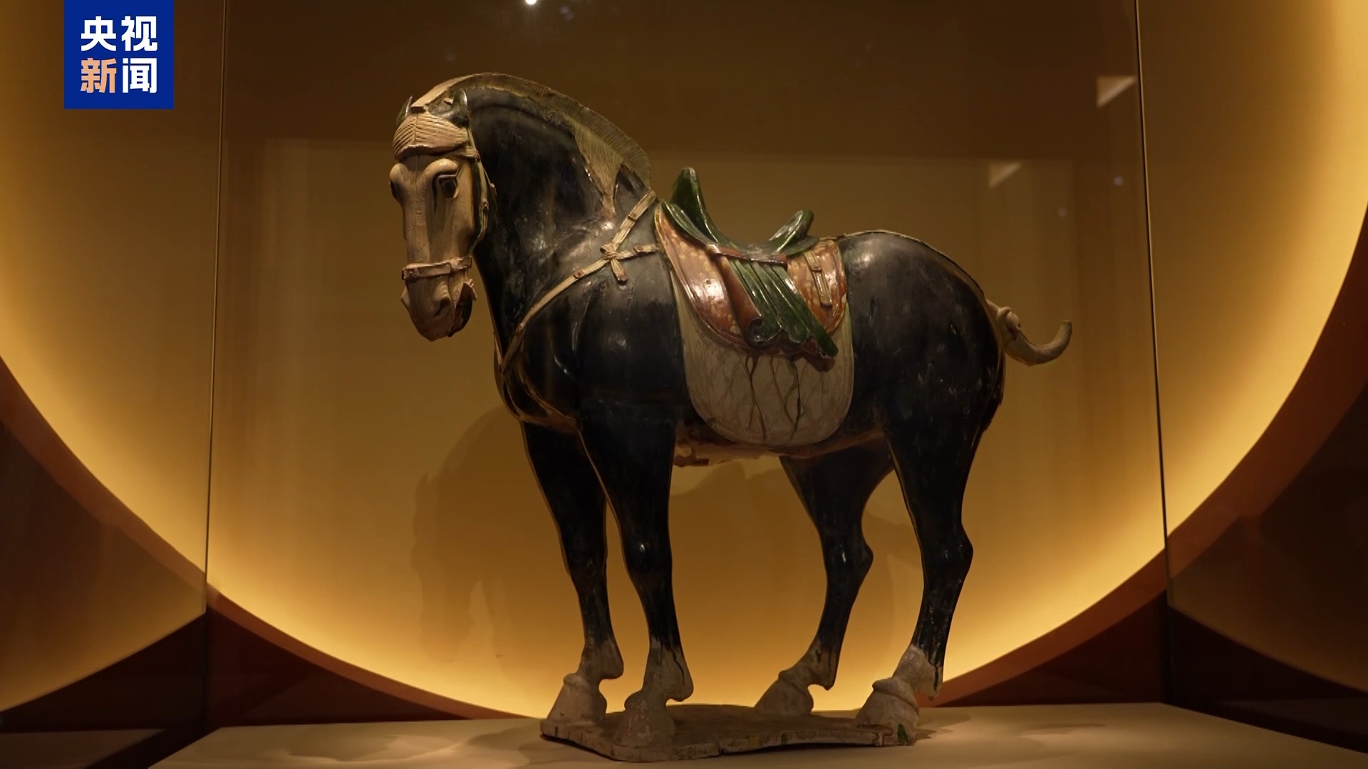 國家博物館館員、策展人 許文珺:它一改漢代時期古拙平穩(wěn)的風(fēng)格,展現(xiàn)出了唐馬的風(fēng)范。它是唐三彩中難得的一件黑釉精品,也是我們國博的鎮(zhèn)館之寶之一。