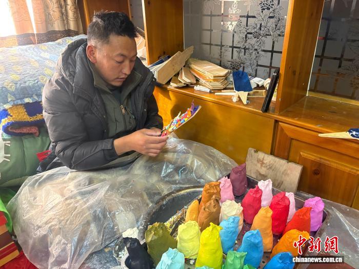 中新網拉薩2月5日電(多吉卓瑪 旦增尼瑪)春節(jié)、藏歷新年將至,西藏自治區(qū)拉薩市大街小巷年貨豐富,節(jié)日氛圍濃厚。在拉薩市區(qū),來自日喀則市仁布縣普松鄉(xiāng)的非物質文化遺產代表性傳承人羅布,正帶著徒弟們,用古老的技藝,為高原佳節(jié)增添一抹獨特的非遺韻味。