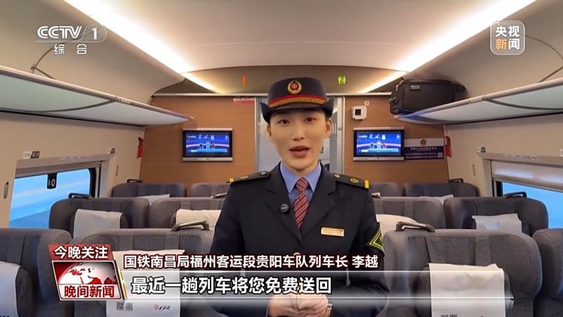 國鐵南昌局福州客運(yùn)段貴陽車隊(duì)列車長 李越:您只需要找到列車的工作人員,出示身份證件,列車長核驗(yàn)好身份信息,開具客運(yùn)記錄。又有旅客問,我下車的時(shí)候該找誰呢,您先別著急,列車長會在最近的前方站將您交接下車,車站的工作人員會安排最近一趟列車將您免費(fèi)送回。