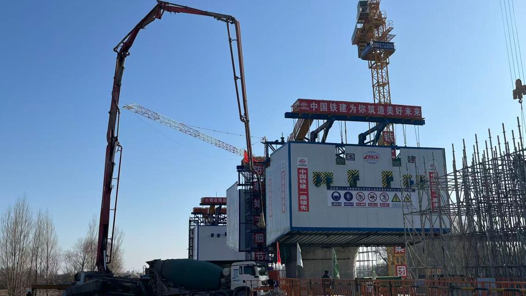 在中鐵二十一局集團(tuán)有限公司所建項(xiàng)目處,機(jī)器轟鳴與焊花飛濺交織,鋼鐵巨臂緩緩運(yùn)轉(zhuǎn),巨大的橋墩向遠(yuǎn)方延展開來(lái)。