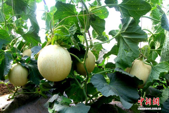近年來(lái),民勤縣立足本地光熱、土壤等資源稟賦,因地制宜發(fā)展特色農(nóng)業(yè),對(duì)蜜瓜栽培模式開展集成創(chuàng)新。當(dāng)?shù)匾劳腥摷苋展鉁厥?,試?yàn)推廣連體拱棚立架式栽培技術(shù),配套膜下滴灌、水肥一體化等現(xiàn)代農(nóng)業(yè)技術(shù),適度規(guī)模培育“吊種”玉菇、白金瑞雪、金色年華等蜜瓜新品種;科學(xué)規(guī)劃布局蜜瓜重點(diǎn)種植基地,逐步打造玉菇甜瓜生態(tài)種植產(chǎn)業(yè)帶,推動(dòng)特色農(nóng)業(yè)集群集聚發(fā)展,為瓜農(nóng)增收致富解鎖新路徑。