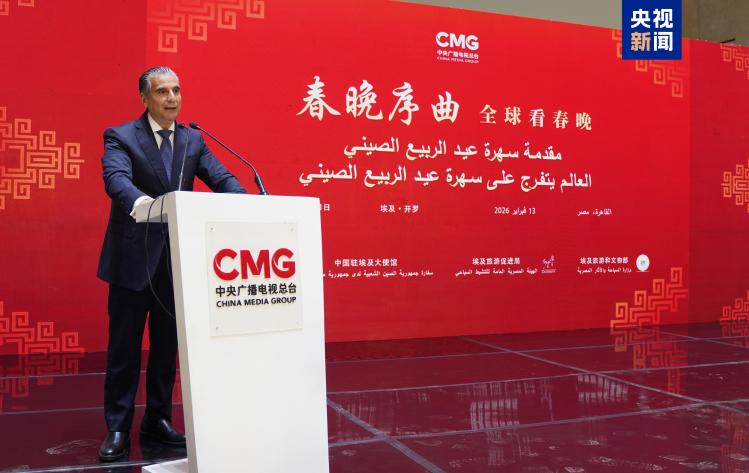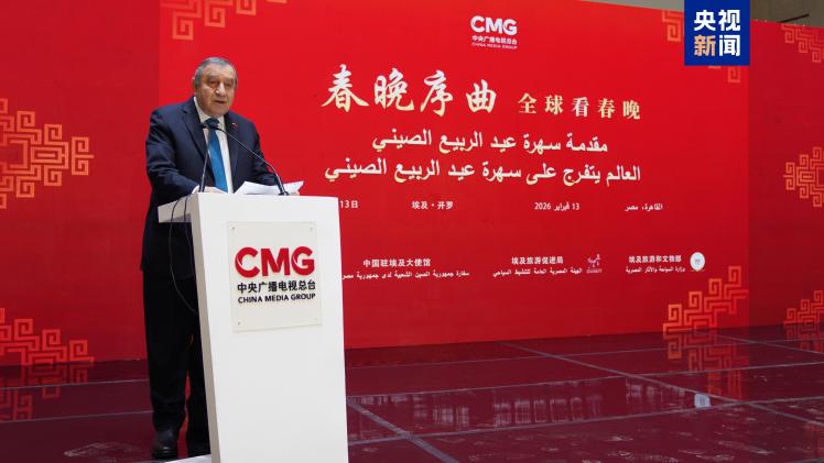 當?shù)貢r間2月13日,“春晚序曲 全球看春晚”埃及專場活動在開羅舉行。本次活動由中國中央廣播電視總臺與中國駐埃及大使館、埃及旅游和文物部、埃及旅游促進局共同主辦。中宣部副部長、中央廣播電視總臺臺長慎海雄作視頻致辭。中國駐埃及大使兼駐阿盟全權代表廖力強,埃及政府代表、埃及外交部亞洲事務部助哈姆扎,埃及前總理沙拉夫出席活動并致辭。埃及考古學家、前文物部長哈瓦斯,埃及旅游促進局主席代拉提芙,埃及外交事務委員會執(zhí)行主任伊扎特,巴德爾大學副校長巴斯歐尼,阿盟非洲事務司司長布斯坦吉,阿盟理事會秘書處主任法赫米等中埃兩國政界、學術界、媒體界代表200余名嘉賓參加活動。