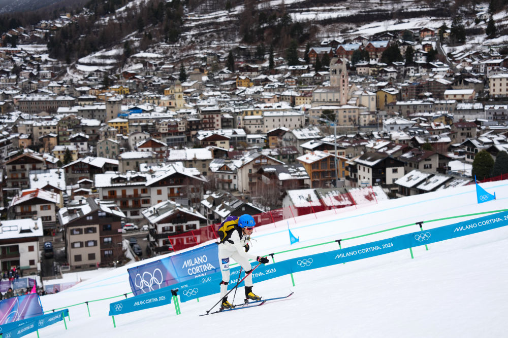2026年2月21日,次旦玉珍在米蘭-科爾蒂納冬奧會(huì)滑雪登山混合接力的比賽中。新華社記者 顏麟蘊(yùn) 攝