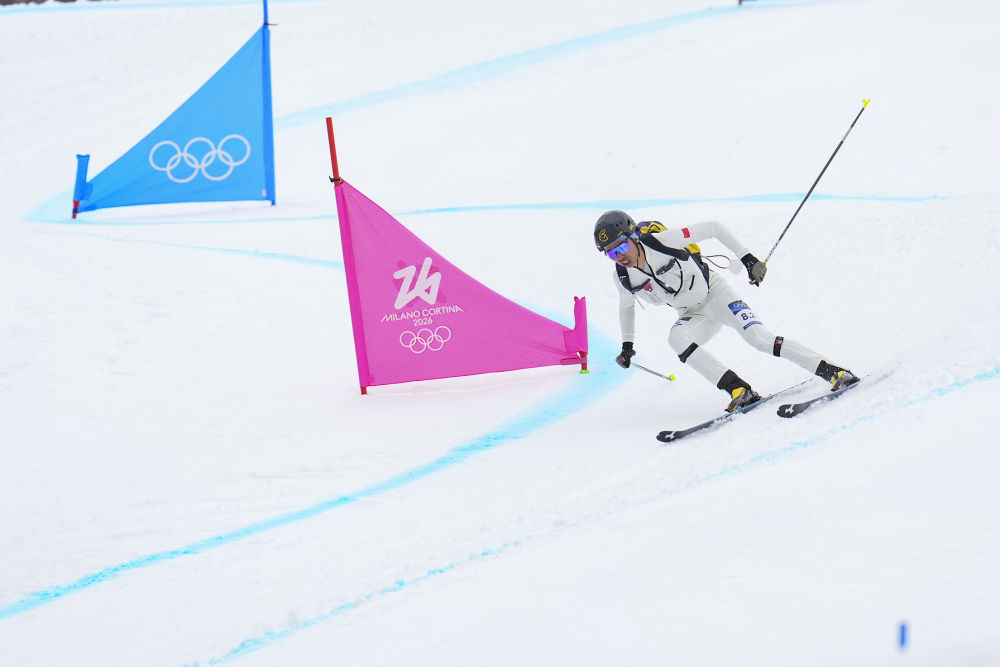 2026年2月21日,布魯爾在米蘭-科爾蒂納冬奧會(huì)滑雪登山混合接力比賽中。新華社記者 胡虎虎 攝