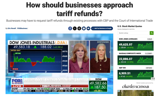 △福克斯商業(yè)臺等媒體已經在普遍報道,企業(yè)應該如何追索退稅