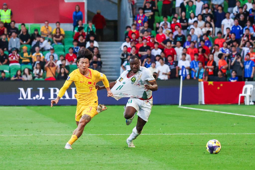 3月31日,在澳大利亞墨爾本舉辦的2026年國(guó)際足聯(lián)系列賽中,中國(guó)隊(duì)0:2不敵喀麥隆隊(duì)。圖為中國(guó)隊(duì)球員徐彬(右)在比賽中拼搶。新華社發(fā)(金誠(chéng)攝)