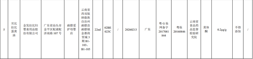 記者注意到,此次通報(bào)的7批次含禁用物質(zhì)化妝品,其中2批次是嬰童產(chǎn)品。產(chǎn)品標(biāo)簽標(biāo)示為金發(fā)拉比婦嬰童用品股份有限公司生產(chǎn)的貝比拉比蛋黃油被檢出含有黃體酮;產(chǎn)品標(biāo)簽標(biāo)示為廣州恒瀾生物科技有限公司生產(chǎn)的嬰貝萱嬰膚霜被檢出含有特比萘芬。