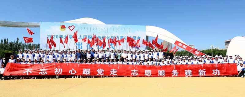 7月29日,2020年內(nèi)蒙古大學生志愿服務(wù)西部計劃志愿者出征儀式在呼和浩特舉行,來自區(qū)內(nèi)外高校的部分西部計劃志愿者代表和旗縣項目辦負責人參加。