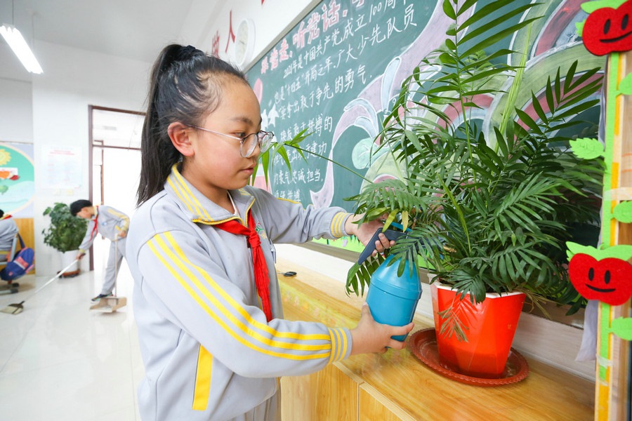 依托班級(jí)“人人有事做,事事有人管”的勞動(dòng)理念,康巴什區(qū)第二小學(xué)每個(gè)班都設(shè)置了諸如“護(hù)花小使者”、“節(jié)能小衛(wèi)士”“圖書管理員”等崗位,學(xué)生自愿申請(qǐng)成為崗位負(fù)責(zé)人,陳海葉就是其中之一。