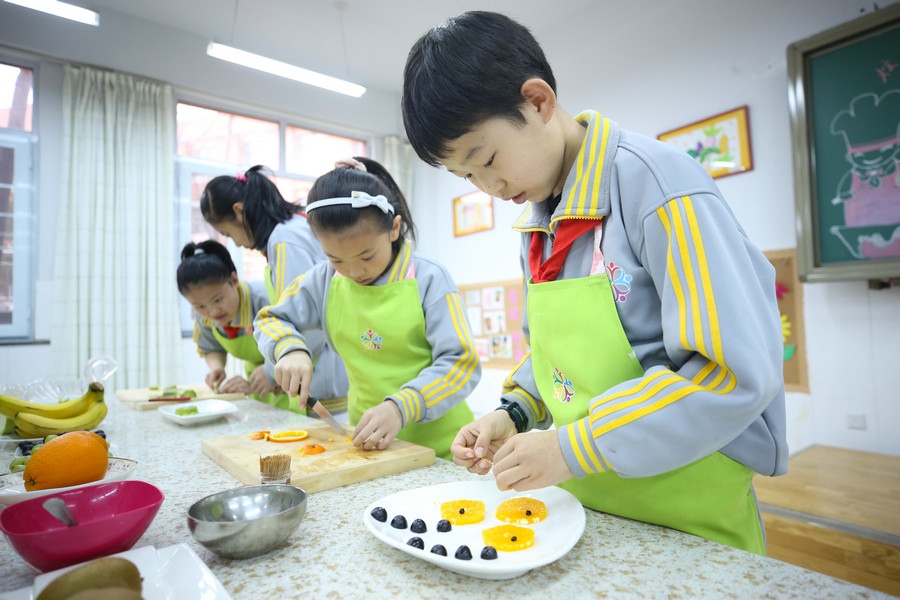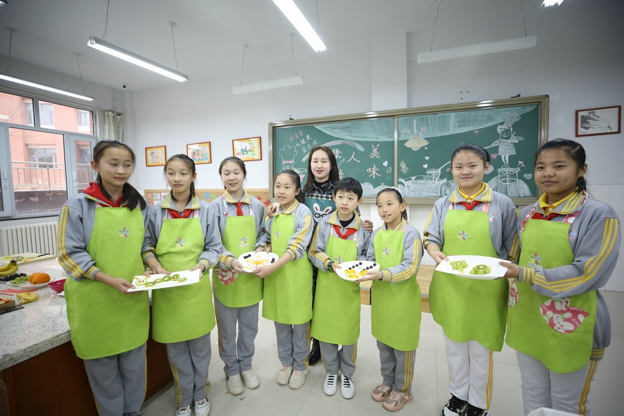 “今日課程學(xué)習(xí)的是水果拼盤和可樂雞翅?!备S勺鏟翻動(dòng),添上各種調(diào)料,一個(gè)個(gè)身著圍裙的學(xué)生們正在老師的指導(dǎo)下忙的不亦樂乎。從擇菜、烹飪到清洗廚具,一個(gè)個(gè)學(xué)生儼然已經(jīng)成為“小廚師”。從三年級(jí)開始,學(xué)校還開展了陶藝、木工、科技制作等活動(dòng),找準(zhǔn)學(xué)生的興趣點(diǎn),學(xué)校有趣的勞動(dòng)技能活動(dòng)吸引了學(xué)生的眼球。