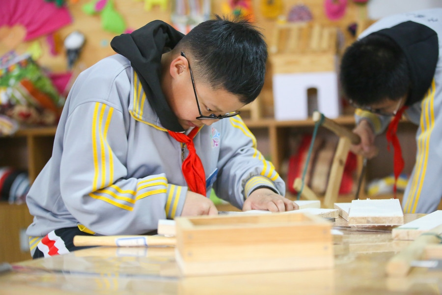 同學(xué)們正在進(jìn)行勞動(dòng)技能活動(dòng) 彭瑞誠攝影