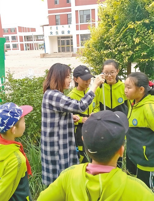 在老師的指導(dǎo)下記錄氣象數(shù)據(jù)。