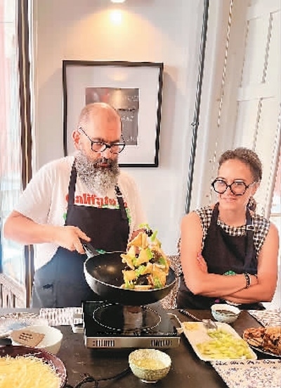 米蓋爾選修的是中華廚藝課,不僅自己學(xué)習(xí),還把太太拉來一起學(xué)做中國(guó)菜。“圣誕晚宴全家聚會(huì)時(shí),我們做了幾道中國(guó)菜,把全家人驚艷到了?!泵咨w爾說。