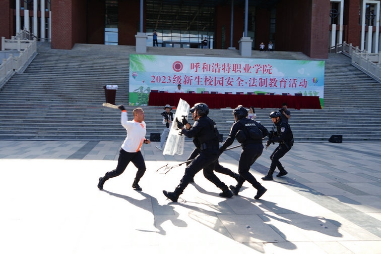 5500余名新生在軍訓(xùn)場上,英姿颯爽朝氣蓬勃,呼和浩特市公安局反恐怖和特巡警支隊教官團隊,通過現(xiàn)場授課及實操演練相結(jié)合的方式進行了處突紅藍對抗演練(紅方為反恐怖和特巡警支隊民警,藍方為由反恐怖和特巡警支隊民警扮演的恐怖分子),指導(dǎo)學生在遇到危險情況下如何應(yīng)對。進一步增強大學生的安全防范意識和自我保護能力。