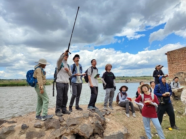 大同思政實踐團成員在桑干河岸觀察地質(zhì)地貌。
