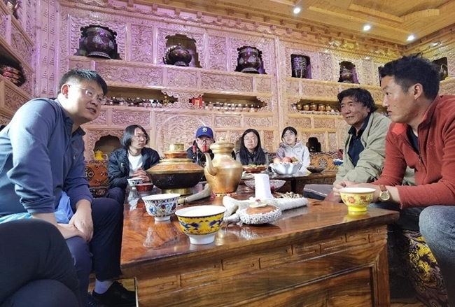 甘孜思政實踐團走進藏民家中訪談調(diào)研。