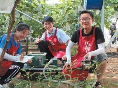 人才培養(yǎng)在遼寧省營口市鲅魚圈區(qū)葡萄科技小院,沈陽農(nóng)業(yè)大學(xué)師生在田間進(jìn)行指標(biāo)測定。邢若男攝(人民視覺)