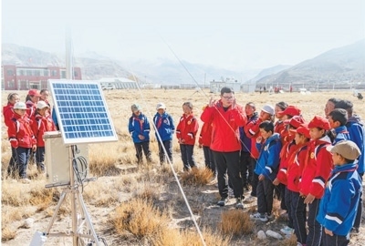 在中國科學院珠穆朗瑪大氣與環(huán)境綜合觀測研究站,西藏日喀則市定日縣扎西宗鄉(xiāng)完全小學學生近距離感受科學觀測,在重點實驗室聽了一堂生動的科學課。