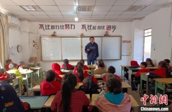除了教語(yǔ)文,宮宇洋還教體育。他把滿是碎石的學(xué)校老操場(chǎng)一點(diǎn)點(diǎn)收拾干凈,打造出一塊籃球場(chǎng),并畫出幾條跑道。做游戲、打籃球、開運(yùn)動(dòng)會(huì)……新操場(chǎng)得到了充分利用,放學(xué)后師生們還坐在一起數(shù)星星。